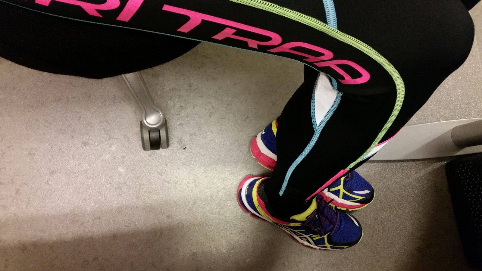 Så denne dagen var eg på jobb kledd i joggesko og treningstights i knæsje fargar!